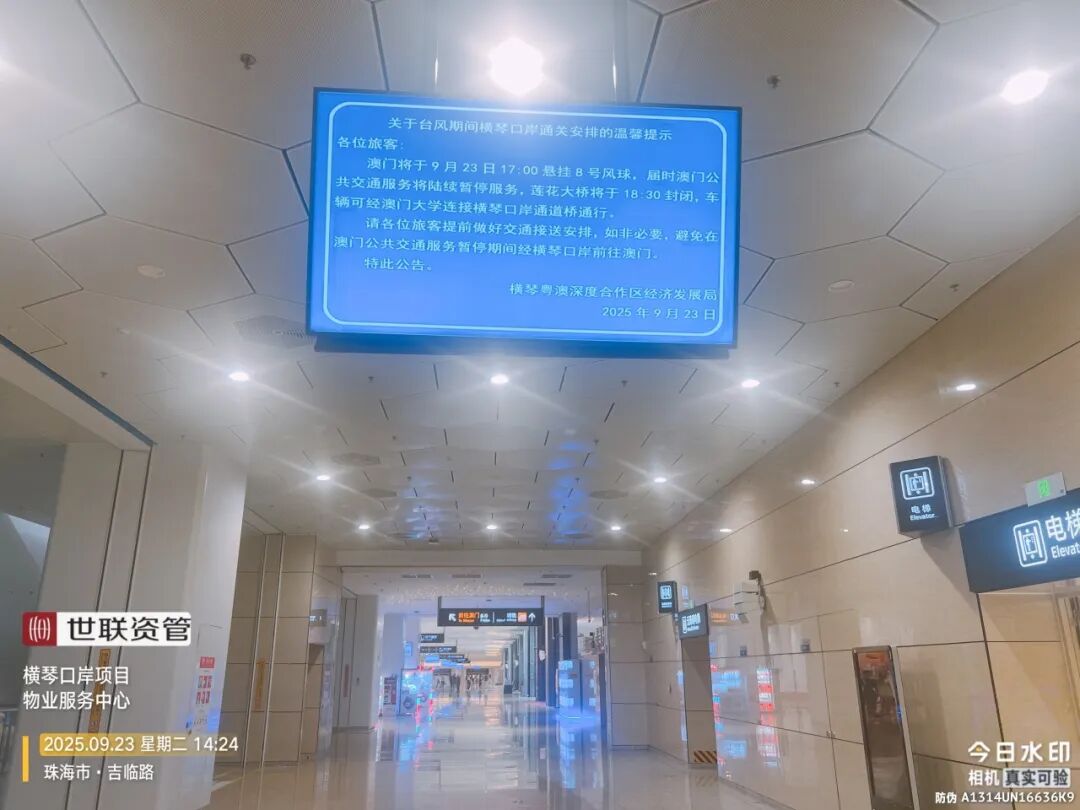 與合作區(qū)經(jīng)濟(jì)發(fā)展局緊密聯(lián)動(dòng),利用橫琴口岸的公共顯示屏及時(shí)播放臺(tái)風(fēng)預(yù)警信息、通閉關(guān)信息,讓旅客隨時(shí)知悉通關(guān)情況,減少滯留旅客,并在口岸開辟專門滯留區(qū),及時(shí)疏導(dǎo)滯留旅客,對(duì)需要特殊照顧的旅客由專人指引到母嬰室安置。